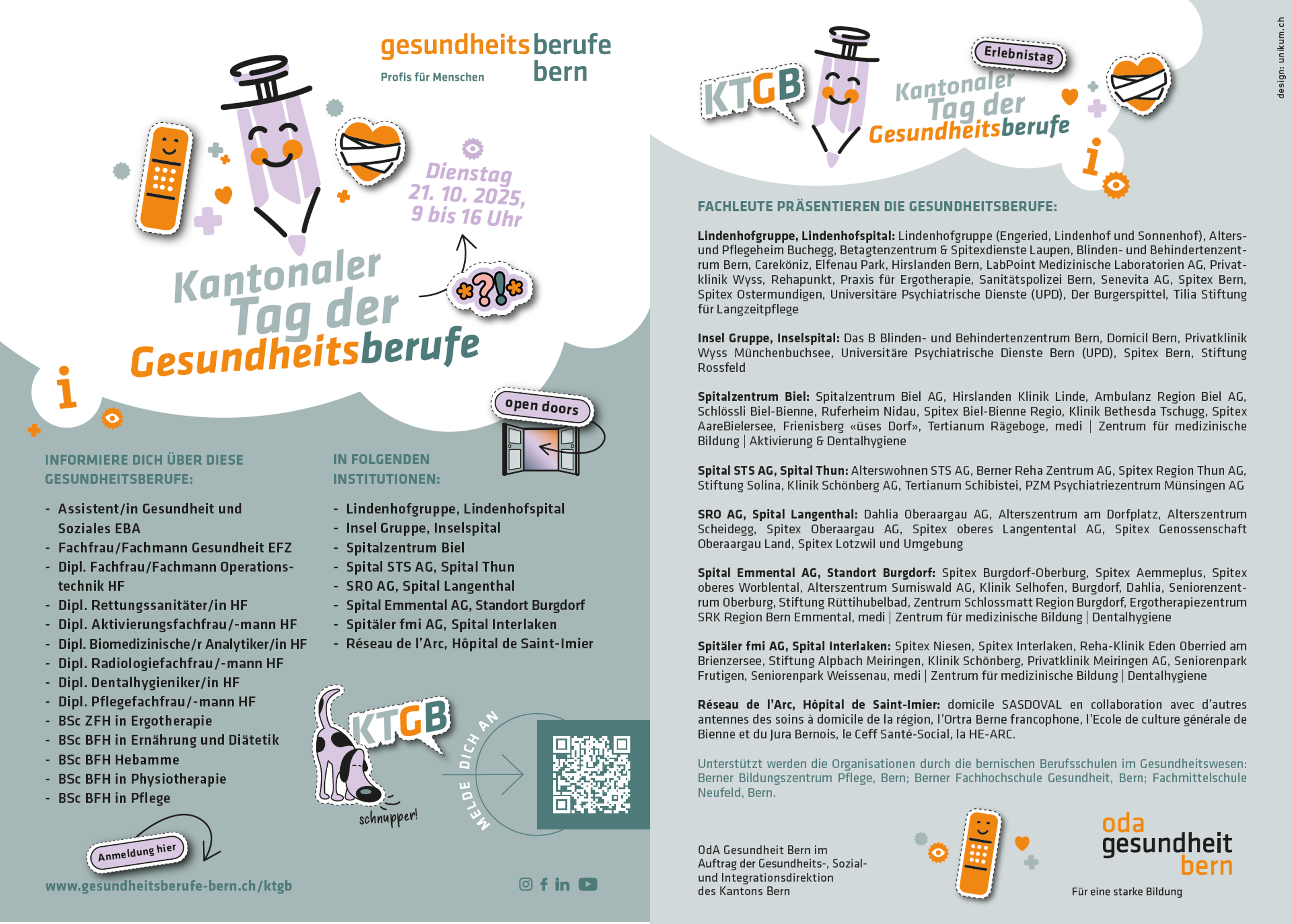 Am KTGB können Schulklassen und interessierte Jugendliche oder Erwachsene Gesundheitsberufe live erleben: Bei Rundgängen, spannenden Einblicken in den Berufsalltag und im Gespräch mit Fachpersonen werden die Berufe erlebbar gemacht.